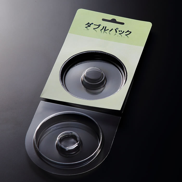 透明なフィルムを二つ折りにして、凹凸部に商品を梱包するパッケージ。商品の見栄えがよく、保管もできます。